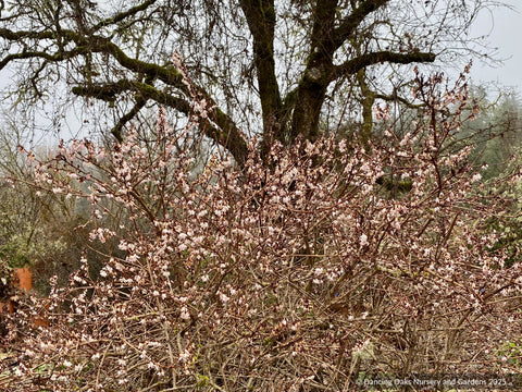 A multi-stemmed, fast-growing, deciduous shrub with arching branches. In very early spring, fragrant white flowers (sometimes pink-tinted) will open from purple buds and bloom along the still-bare stems. Place this one along a path where you'll enjoy the sweetly scented white flowers in early- through mid-spring. After the blooms are spent, medium-green leaves will emerge.