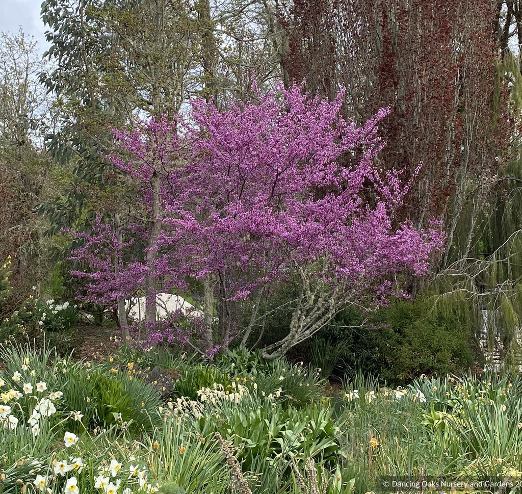 A rounded, deciduous large shrub or small tree up to 20 ft tall. This gratifying western native becomes covered with a profusion of flowers in spring. A soft, rose-purple haze enlivens the landscape from February to April. Very heat, drought, and clay tolerant, it's not for the coast; it needs distinct seasons to flower. Flowers emerge before the leaves and young pods are purportedly edible. Rounded heart-shaped leaves turn from a light green in spring, to medium green in summer, to a rich red in autumn. Butterflies will alight!