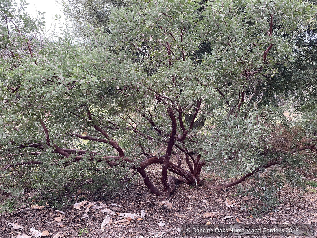 Elizabeth has an open habit with lovely silver-green leaves (she ages well!), shell-pink urn-flower clusters, and the classic burgundy bark. Beautiful contrast.