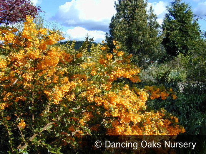 Spectacular yellow-orange flowers smother this evergreen shrub in spring. Prefers sun or part shade for heaviest bloom.