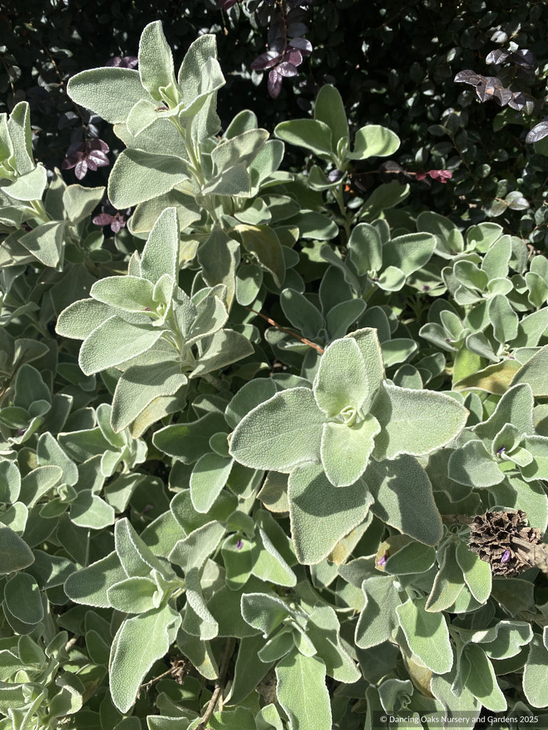 Compact native hybrid from Cythera, Greece, possibly between P. cretica × P. fruticosa. Evergreen rounded shrub, with wooly grey-green leaves, requires little to no summer water once established. Bright yellow flowers bloom in whorls. Appreciates freely draining soil in full sun. Native soil is calcareous - addition of lime or oyster shell when planting would be appreciated.
